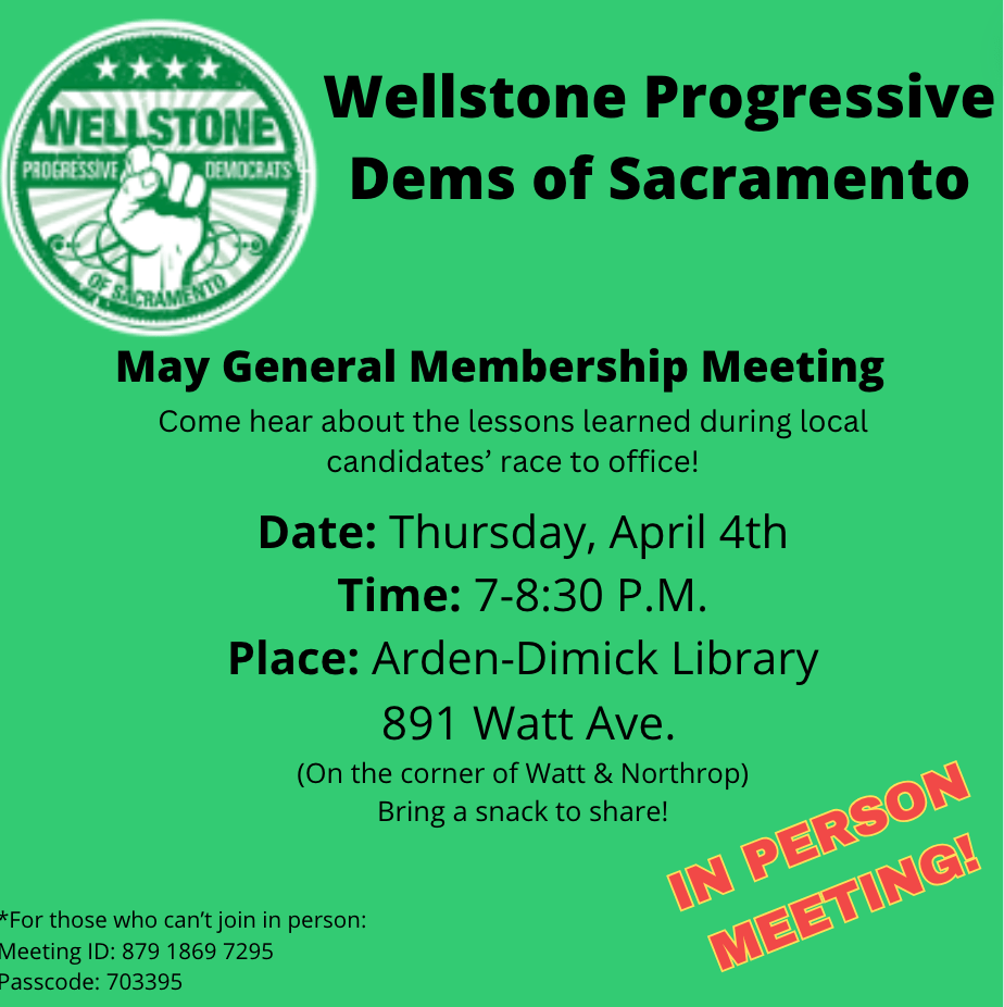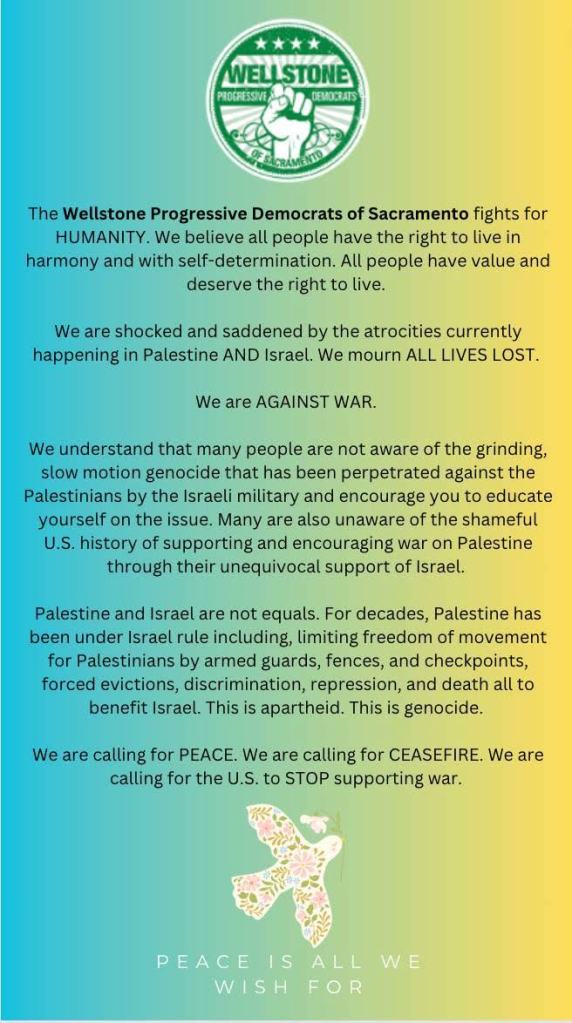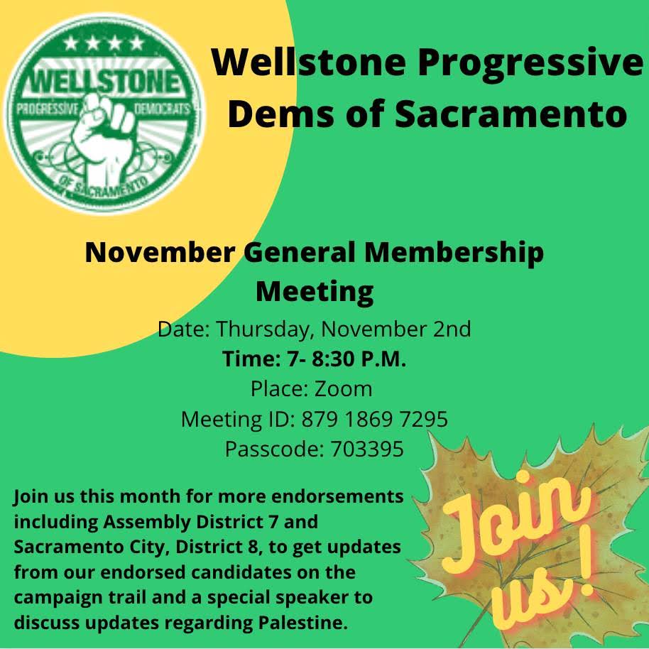 Special guest speaker to discuss updates regarding Palestine as well as discuss endorsements for Assembly District 7 and Sacramento City Council District 8